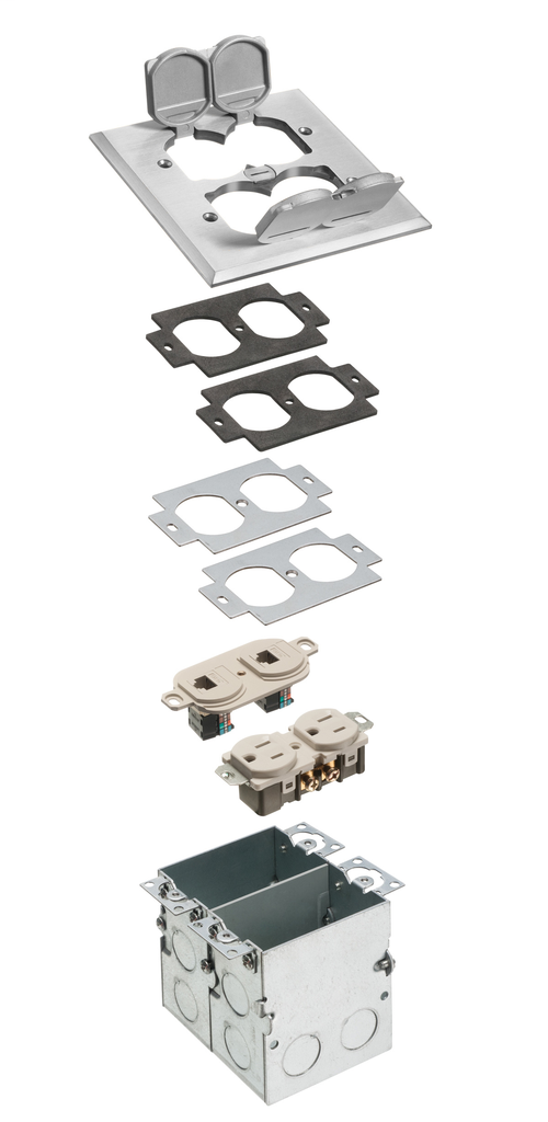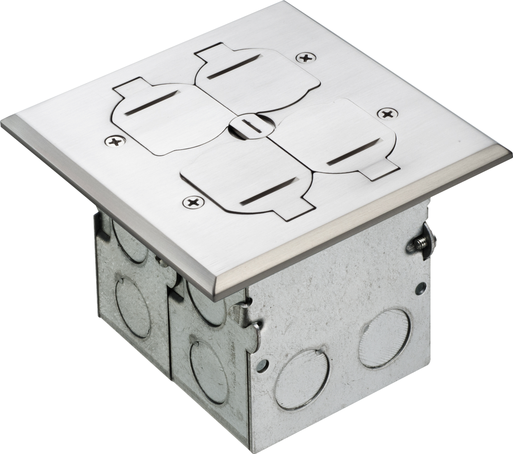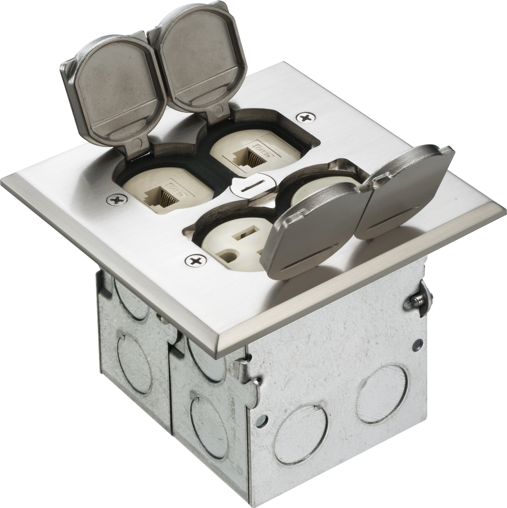 This combination floor box kit, expertly crafted by Arlington Industries, combines functionality and versatility for both new and existing flooring applications. The design features a durable plastic box that houses a duplex receptacle and a low-voltage duplex plate, making it ideal for managing power and low-voltage cabling seamlessly. A striking nickel-plated cover completes the ensemble, which includes four convenient flip lids to protect connections. Certified with cULus listing, this floor box kit ensures secure and reliable performance, making it an essential component for modern installations.