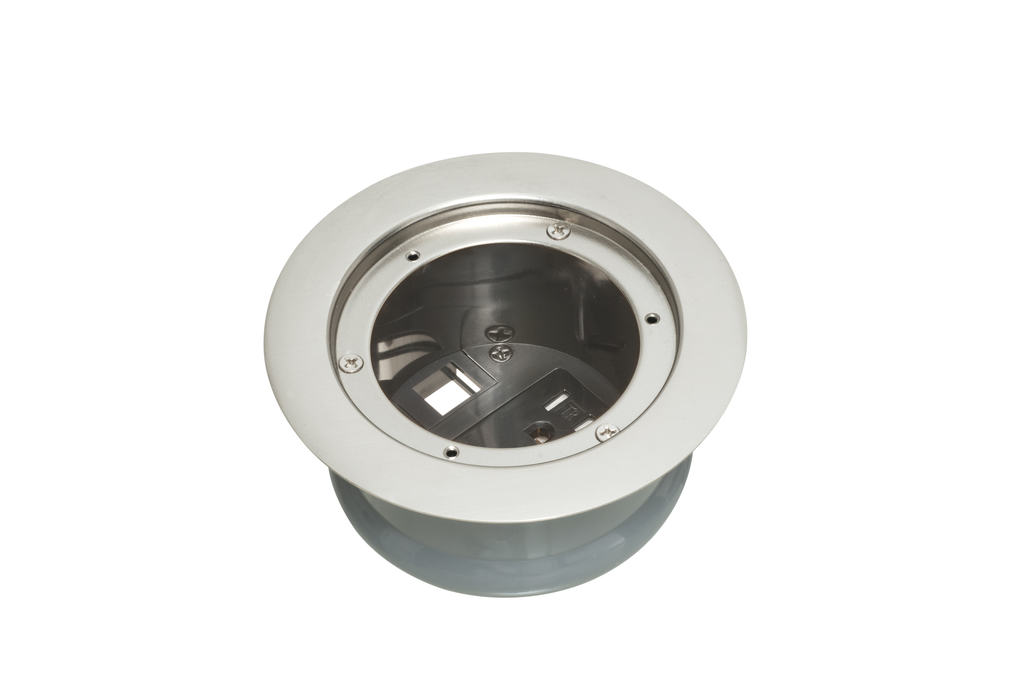 The InBox cover kit from Arlington Industries is expertly designed to provide a sleek and functional solution for installing recessed receptacles and low-voltage keystones in new concrete applications. Featuring a metallic nickel-plated brass cover, this kit complements modern design aesthetics while ensuring durability and strength. It is compatible with Arlington’s FLBC4500 and FLBC4502 boxes, conveniently accommodating a 4.5-inch diameter concrete box. This 1-gang cover kit not only adheres to UL listings for safety but also boasts a thoughtful design that makes installation straightforward and efficient, helping to maintain clean lines in your installation projects.