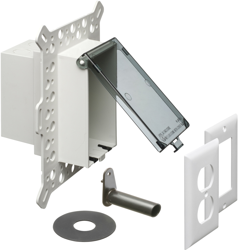 Arlington Industries presents a low-profile inbox designed specifically for new construction, making it an ideal solution for installations on stucco, textured surfaces, and rigid siding. This vertical outlet box features a weatherproof design, ensuring that it meets the necessary standards for outdoor use; it remains compliant with the 2017 NEC Section 406.9 (B) for exterior outlets requiring an extra-duty cover. Crafted from UV-rated plastic and finished in a sleek white, it includes a clear cover that allows for visibility of the outlet while helping to protect it from the elements. Perfect for both reliability and functionality, this 1-gang inbox is equipped with a grounding clip option, making it a smart choice for electrical installations that prioritize safety and durability.