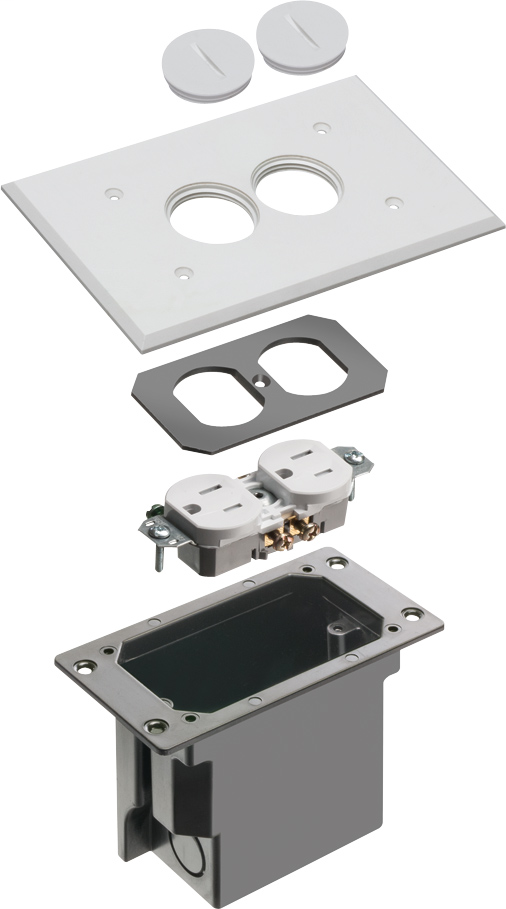 Arlington Industries presents a thoughtfully designed non-metallic box that is ideal for retrofitting receptacles into existing floors. Its stylish white rectangular cover features threaded plugs, ensuring a secure and neat installation while providing a durable enclosure for electrical connections. Constructed from high-quality plastic, this UL-listed floor box is not only reliable but also versatile, making it an excellent choice for a variety of indoor applications. With its practical design, it allows for seamless integration into your flooring while maintaining a clean aesthetic.