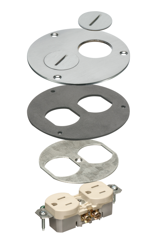 Elevate the functionality and aesthetics of your existing floor with these expertly designed trim kits from Arlington Industries. Featuring a 4-inch round metal cover crafted from durable nickel-plated material, this kit not only ensures a sleek and modern look but also encloses a receptacle with reliable protection. The innovative design includes threaded plugs for secure connectivity, making it suitable for various applications. Additionally, this trim kit boasts compatibility with the Arlington FLB3500 Box and is also available in a classic brass finish for those seeking a different aesthetic. Meeting cULus standards, it promises both quality and safety in your electrical installations.