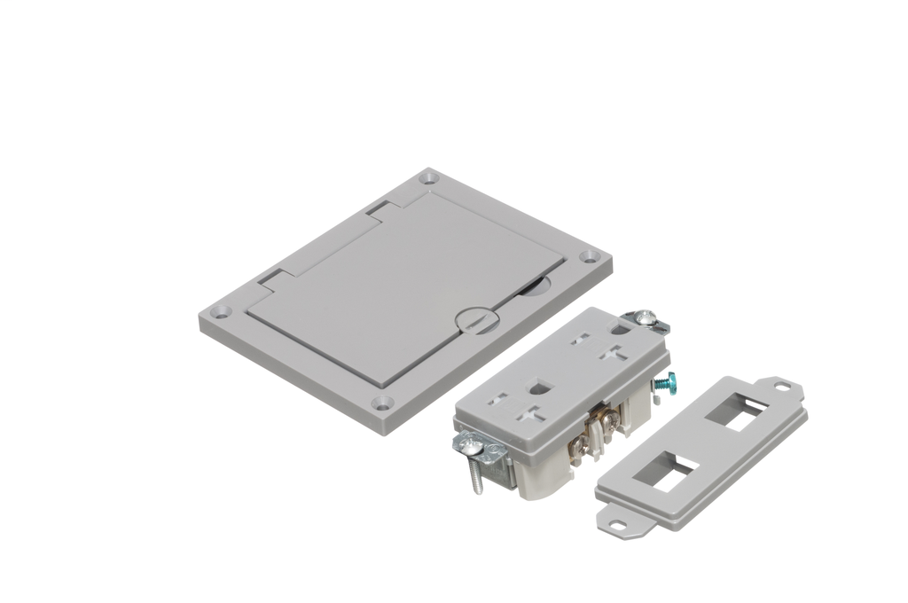 This gray non-metallic single gang cover kit is designed to offer both functionality and durability for various electrical applications. It features a convenient flip lid cover, ensuring easy access while maintaining a clean aesthetic. Included in the kit is a 20A decorator style receptacle and a low voltage insert, making it an ideal solution for integrating power and low voltage services within one unit. Constructed from sturdy plastic and featuring a gasketed design, it provides reliable protection and sealing, ensuring safety and longevity in both residential and commercial settings.