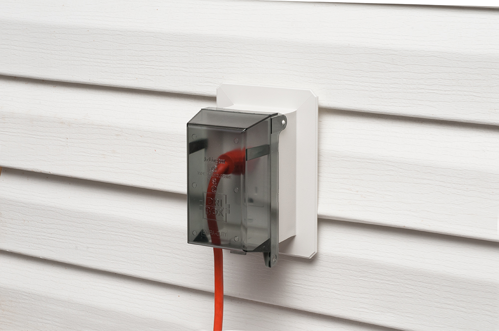 This weatherproof outlet box is specifically designed for installation on vinyl siding, offering robust protection for outdoor electrical connections. Crafted from UV-rated plastic, it ensures durability and reliability in various weather conditions, while its vertical design with a clear cover allows for easy visibility of the outlet. The unit includes features such as lockability and bug plugs, making it an ideal choice for maintaining safety and functionality outdoors. This 1-gang box not only meets stringent standards with its cULus listing but also provides a practical solution for environments where weather exposure is a concern.