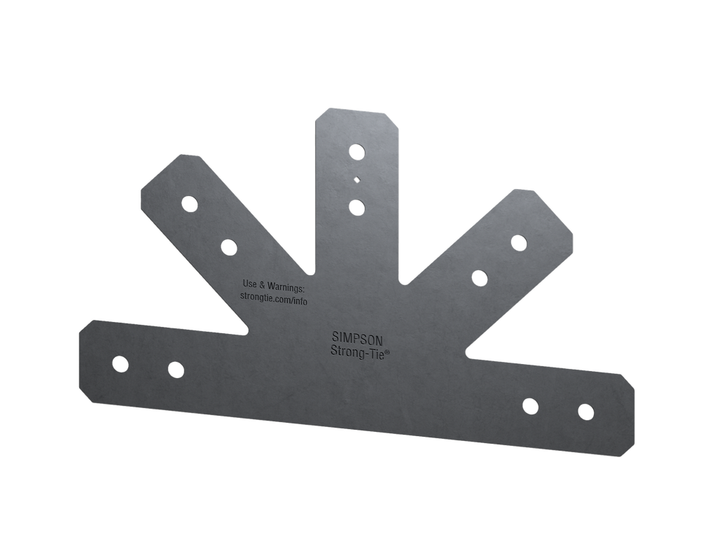 The Simpson Strong-Tie® Outdoor Accents line of decorative hardware features connectors and fasteners that bring beauty and strength to custom outdoor living structures. The Avant Collection features straighter edges for a more contemporary design. These gable plates provide reinforcement for a connection from a wood beam to three angled wood braces.