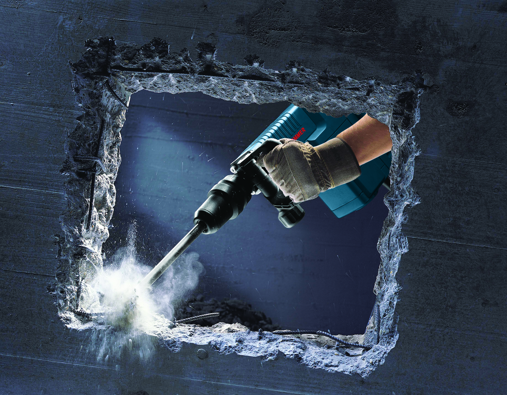 The SDS-max® Demolition Hammer by Bosch is engineered for superior demolition performance, combining power and ease of use for any project. With a variable-speed dial, this tool allows for precision in chipping applications, while its robust SDS-max® bit system facilitates tool-free bit changes and ensures maximum impact energy transfer. Designed for operator comfort, it features a padded rear handle that absorbs shock, and a 360° auxiliary handle that enhances maneuverability. The Vario-Lock positioning enables the chisel to be rotated into 12 different positions, optimizing working angles for a more efficient demolition process. Additionally, the built-in Service Minderlight alerts users when maintenance is due, ensuring longevity and reliability during heavy-duty use.