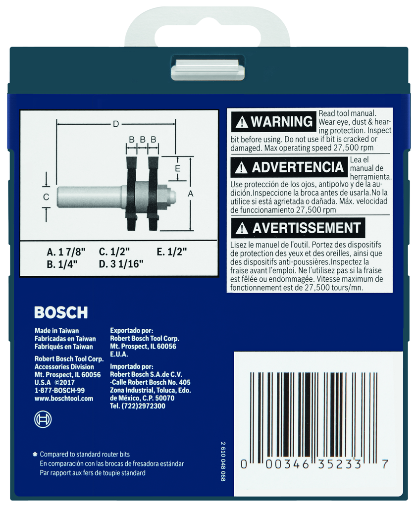 Bosch 84624MC – 1 7/8″ DIA X 3/4″ TONGUE AND GROOVE W BB, 1/2″ SHANK