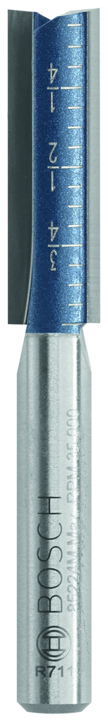 This carbide-tipped double-flute straight router bit from Bosch is engineered for exceptional durability and precise performance in a variety of woodworking applications. With a robust micrograin carbide tip, it guarantees consistently smooth finish cuts, allowing for effective work in harder materials while minimizing vibration. The fully hardened steel shank enhances its stability and longevity, ensuring reliability during extended use. With a double flute design, this bit enables better finishes and efficient feed rates, making it an ideal choice for mortising, edge forming, trimming, and cabinetry tasks. Whether working with wood, plastic, or laminate, this router bit stands out in its category for delivering quality results with every cut.