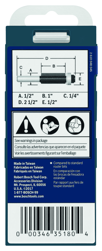 Bosch 85266MC – CT 1/2 X 1 FLUSH TRIM W/BB 2F 1/4S