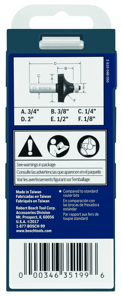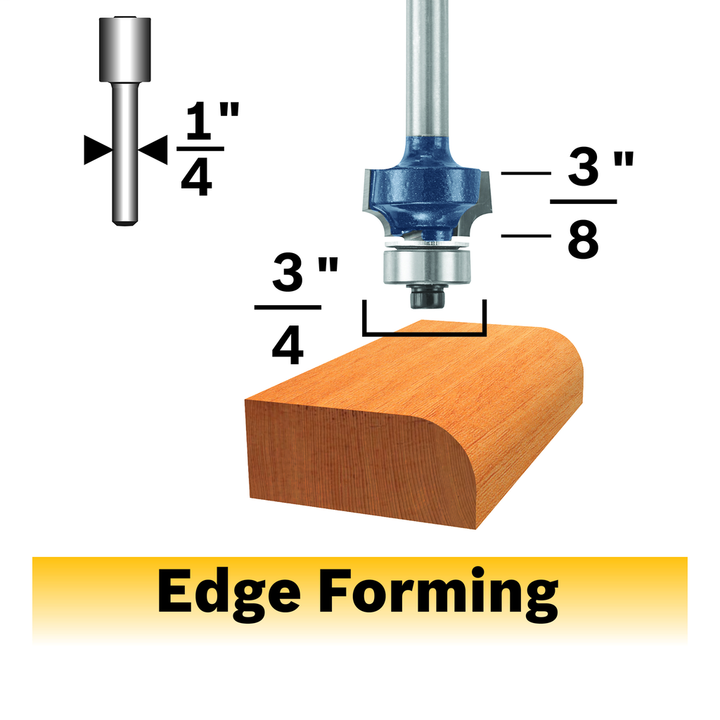 This carbide-tipped roundover router bit from Bosch is expertly engineered to deliver flawlessly radiused edges on wood, plastic, and laminate surfaces. Designed for efficiency, it minimizes the need for sanding before finishing, allowing for smooth and professional results with ease. The bit features an upgraded micrograin carbide construction, ensuring superior wear resistance and consistent performance, while its compact ball-bearing pilot aids in guiding the bit along the material edge.