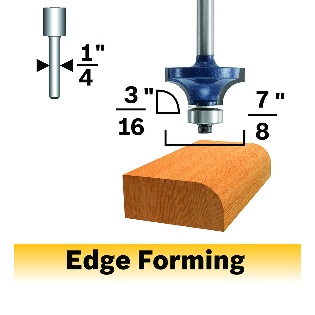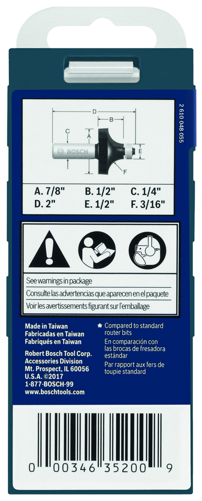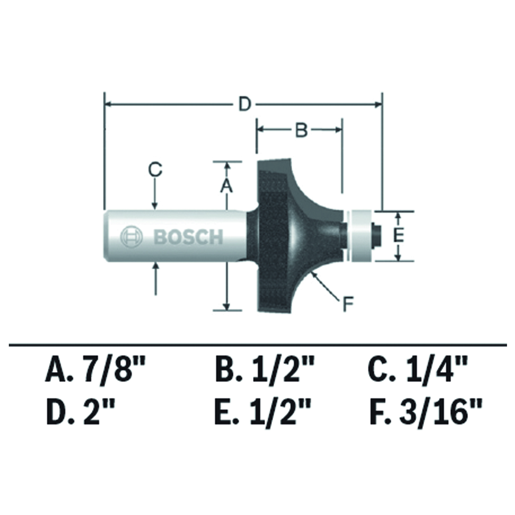 The 3/16 In. x 1/2 In. carbide-tipped roundover router bit from Bosch is an essential tool for any crafting or woodworking enthusiast looking to achieve smooth, radiused edges on boards and panels. Engineered with a compact ball-bearing pilot, it expertly navigates along the material edge, ensuring precision during every cut. The high-performance micrograin carbide design enhances durability and offers a consistently smooth finish, significantly reducing the need for post-cut sanding.