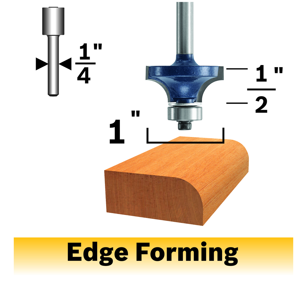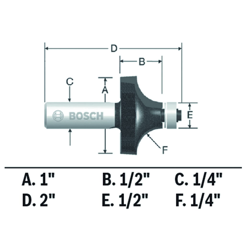 Elevate your woodworking projects with this 1/4 inch x 1/2 inch carbide-tipped roundover router bit from Bosch, designed to create beautifully rounded edges with minimal effort. The micrograin carbide tip ensures a consistently smooth finish while offering superior wear resistance, making it a reliable choice for both hobbyists and professionals. A compact ball-bearing pilot guides the bit along the material’s edge, allowing for exceptional precision and control. The reinforced shank, made from fully hardened and tempered steel, offers unmatched durability and withstands the rigors of intense use, while Bosch’s exclusive heat-treating process ensures the bit maintains its hardness even under high temperatures. With its ability to produce smoothly radiused edges that require little to no sanding, this router bit is a valuable addition to any woodshop.
