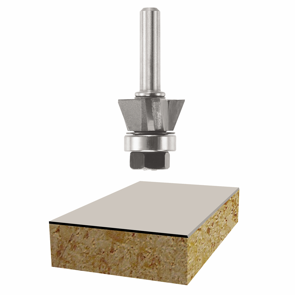 Crafted for precision and durability, this bevel trim assembly bit from Bosch enhances your trimming projects with its advanced design. The triple flute configuration ensures an exceptional smoothness and high-quality finish, making it ideal for working with laminates, veneers, and similar materials. Fitted with micrograin carbide tips, the bit offers superior wear resistance for prolonged use, while the shielded, compact ball-bearing pilot guides the bit along the edge of your material for accuracy. Included with an arbor and a replaceable 3-wing cutter, this essential tool combines versatility with performance, making it a reliable choice for any woodworking enthusiast.