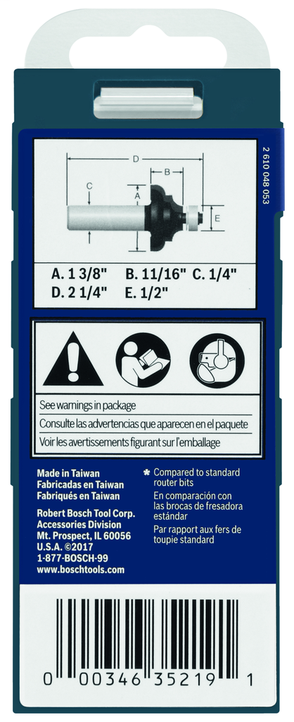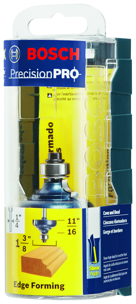 The Bosch 1-3/8 In. x 11/16 In. Carbide-Tipped Cove and Bead Router Bit is expertly crafted for woodworkers seeking precision and durability in their projects. Engineered with upgraded micrograin carbide, this bit ensures clean, accurate cuts while providing an extended lifespan. It features a smoothly radiused edge that minimizes additional sanding needed prior to finishing, allowing for efficient workflows in cabinetry and other woodworking endeavors. With its reinforced steel shank and exclusive heat-treating process, it delivers exceptional strength to withstand high temperatures during use, making it a reliable choice for both professional and DIY applications. This cove and bead bit is ideal for creating beautiful accent edging, enhancing the visual appeal of your woodworking creations.