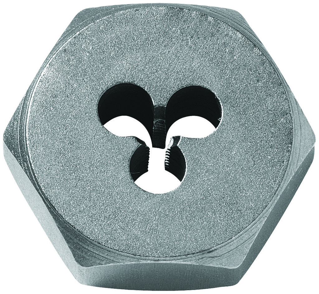 Engineered for precision and durability, this hex die from Bosch is a reliable tool for cutting right-hand external threads, making it an ideal choice for threading rods, bolts, and studs in various applications. The heat-treated high-carbon steel construction ensures superior durability while maintaining speed, allowing you to work efficiently without compromising on quality. Its innovative flute design facilitates fast and easy chip clearance, while the laser-etched markings provide clear size identification that won’t wear off, making setup and usage straightforward. Measuring 1 inch across the flat, this solid die is designed with meticulous precision to guarantee a tight fit, ensuring optimal performance whenever you reach for it.
