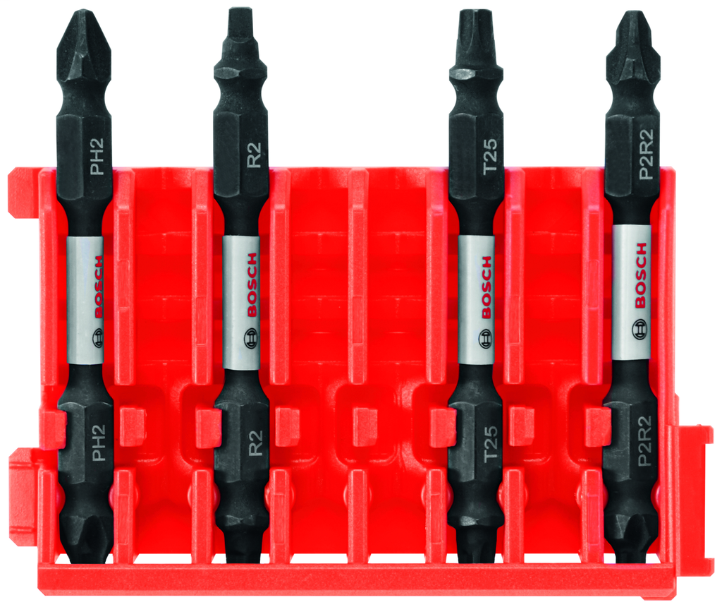 Experience enhanced versatility and durability with this set of four double-ended bits, crafted by Bosch. Featuring a thoughtful design that includes heat-treated manufacturing, these bits offer exceptional strength and longevity, ensuring reliable performance across various applications. The integrated Xtended Torsion Zone allows for greater flexibility, delivering the dependable results of single-ended bits while significantly extending their lifespan.