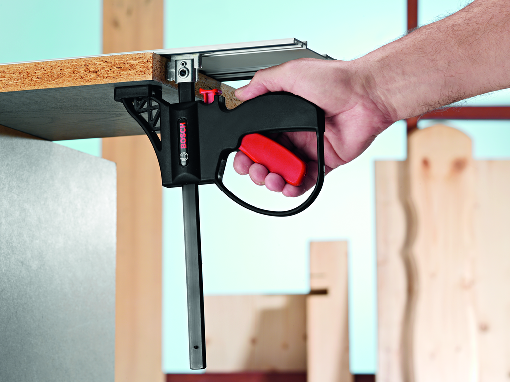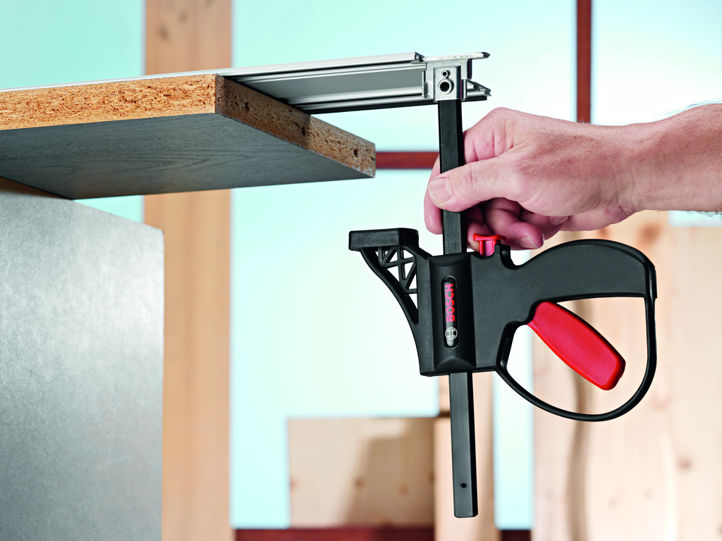 Crafted by Bosch, these track quick clamps are essential for achieving precision and ease during cutting tasks. The clamps feature a push-button release mechanism that allows for quick unlocking, ensuring a seamless workflow as you transition between cuts. Designed specifically to lock into Bosch track-saw tracks, they efficiently secure the tracks to your workpiece with just a squeeze of the trigger, making it easier to produce straight and clean finishes on various wood materials, including laminated particle boards and plywood.