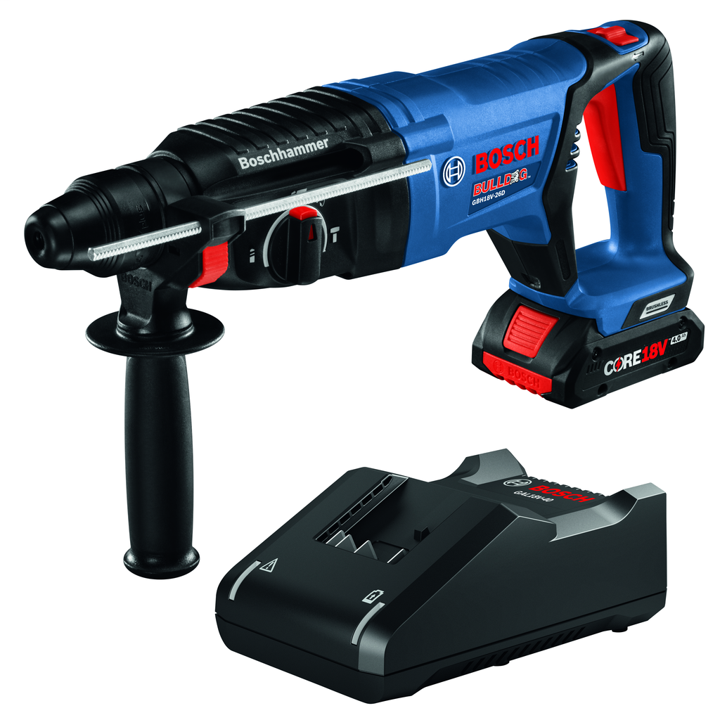 Bosch GBH18V-26DK15 – 18V Brushless 1″ SDS-plus® D-Handle Rotary Hammer w/ (1) 4.0 Ah CORE Compact Battery