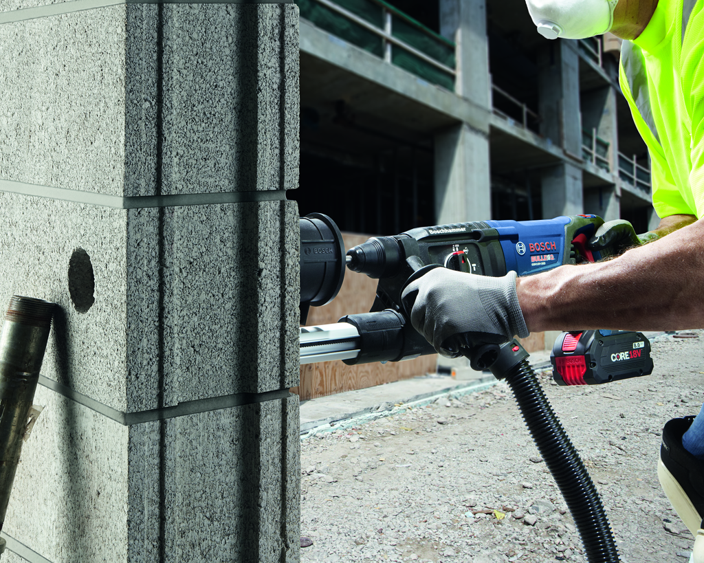 The 18V EC Brushless SDS-plus Bulldog™ 1 In. Rotary Hammer from Bosch is engineered to deliver exceptional performance and versatility for professionals and DIY enthusiasts alike. With its lightweight D-handle design, this rotary hammer is easy to maneuver, making it ideal for overhead, horizontal, and downward drilling applications. Featuring KickBack Control technology, it minimizes the risk of tool reactions during binding conditions, contributing to safer operation on the job site.