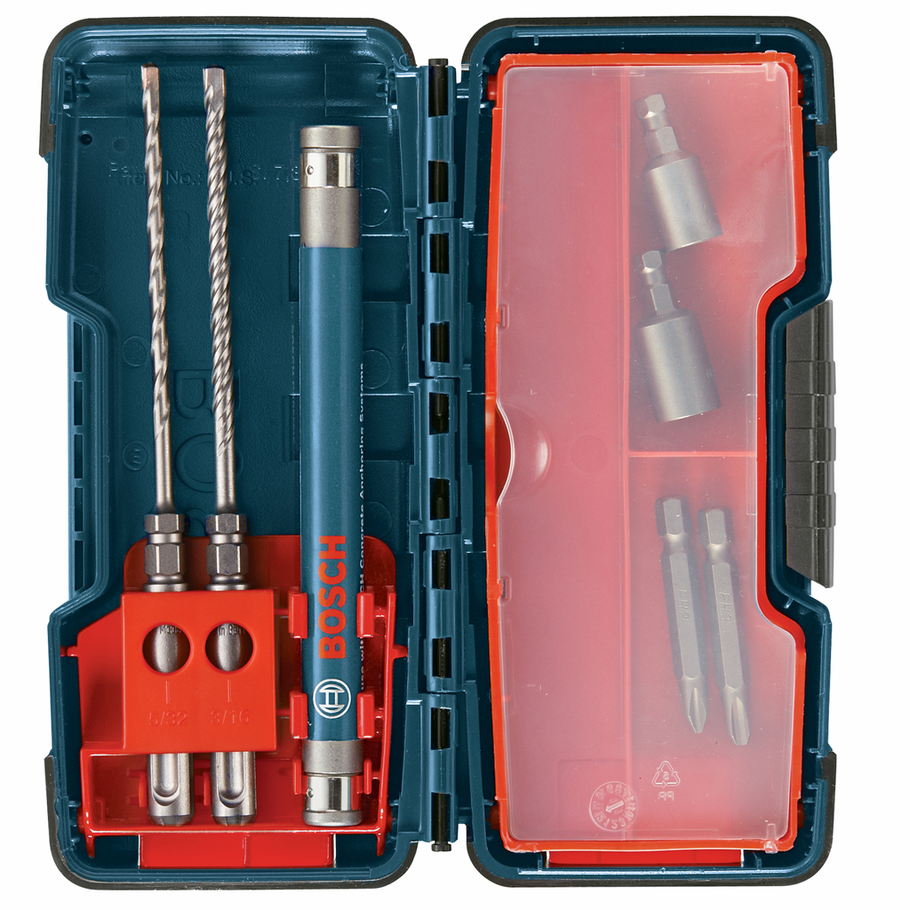 The 7-piece SDS-plus® Bulldog™ Anchor Drive Installation Kit from Bosch is expertly designed for concrete anchoring applications, providing everything you need to quickly and efficiently set masonry screws. This comprehensive installation kit includes two carbide-tipped hex bits sized 5/32 inches and 3/16 inches, as well as #2 and #3 Phillips® power bits and both 1/4-inch and 5/16-inch sockets. With utility in mind, it’s equipped with a 5-3/4 inch sleeve and features a 1/4 inch hex shoulder for compatibility with drive sleeves, ensuring effective performance across various projects. Ideal for professionals and DIY enthusiasts alike, this kit guarantees precision and reliability during installation, while emphasizing the importance of safety equipment such as eye and ear protection.