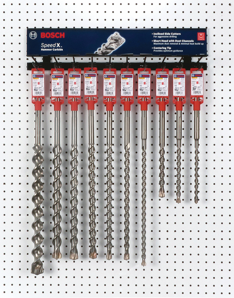 The Bosch 1-1/2 In. x 21 In. SDS-max® Speed-X™ Rotary Hammer Bit is engineered for optimal precision and efficiency in concrete drilling. This bit features an active-centering tip that ensures quick and accurate starts, complemented by inclined side cutters that deliver the highest drilling speed. With a compact head designed for effective dust removal, it extends the lifespan of the tool while offering wear mark indicators for precise hole diameter accuracy. Built with carbide-tipped material and designed for use with SDS-Max chucks, this exceptional drill bit is an essential tool for professionals looking for reliable performance in demanding applications.