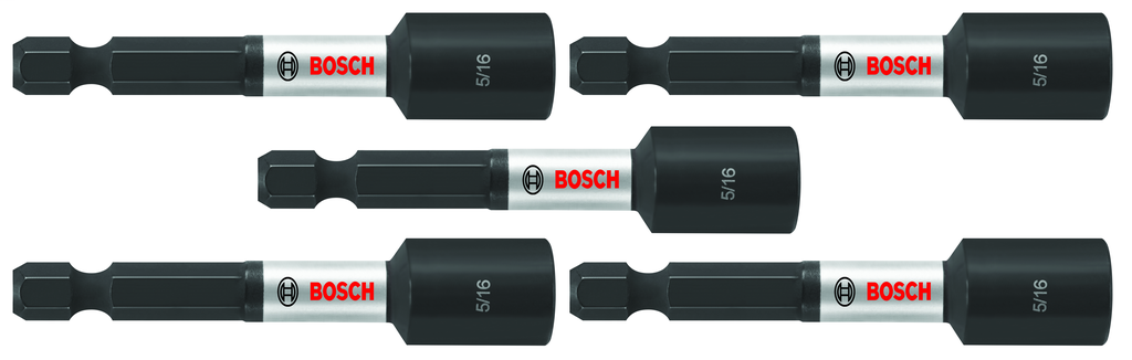 This 5-piece set of Impact Tough™ nutsetters from Bosch is designed to elevate your drilling and fastening tasks with precision and durability in mind. Each nutsetter features precision-engineered tips that provide a tighter fit, significantly reducing the risk of cam out. Built to withstand rigorous use, these bits boast a lifespan that is 10 times longer than standard impact bits, thanks to their heat-treated construction which enhances strength.