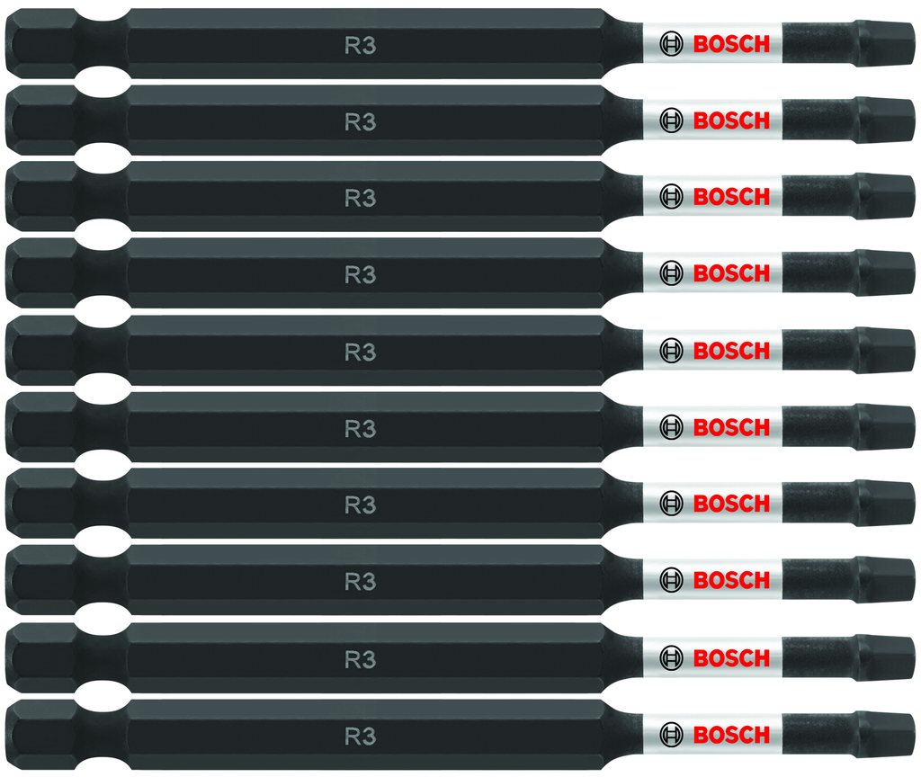 The 10 pc. Impact Tough™ 3.5 In. Square #3 Power Bits from Bosch are engineered for professionals seeking reliability and performance in their impact drivers. These precision-crafted bits feature a robust Xtended Torsion Zone that effectively absorbs the high-torque output from modern impact tools, significantly enhancing their lifespan by delivering ten times the durability compared to standard impact bits. Manufactured from heat-treated alloy steel, they ensure a stronger bit capable of withstanding demanding tasks, while the high-visibility sleeve with laser-etched markings facilitates easy identification and quick changes. With a fitting design tailored for a 1/4 inch chuck, this set is an essential addition to any toolkit, making your fastening jobs more efficient and effective.