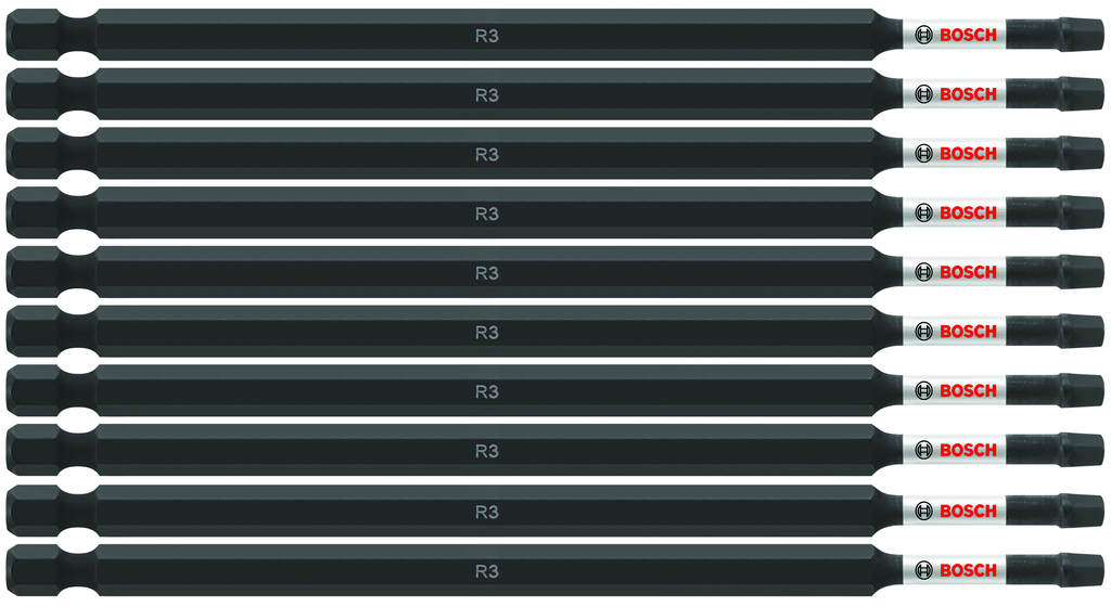 Engineered with durability in mind, the 10-piece Impact Tough™ 6-inch Square #3 Power Bits from Bosch offer exceptional longevity, boasting a remarkable ten times the life of standard impact bits. The innovative Xtended Torsion Zone is designed to absorb the high-torque produced by modern impact drivers, allowing these bits to handle demanding tasks with ease. Each bit is heat-treated for enhanced strength, while precision-engineered tips ensure a secure fit and minimize cam-out during use.