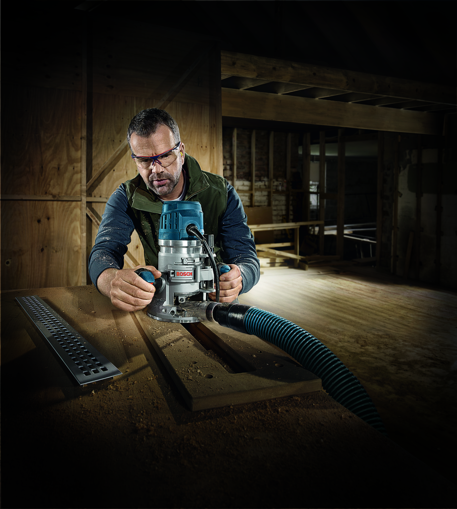 The 2.3 HP Electronic Modular Router System by Bosch is a highly versatile and powerful tool designed for both precision and durability in woodworking tasks. Featuring a robust 15-amp motor capable of producing speeds ranging from 10,000 to 25,000 RPM, this router effortlessly adapts to various materials and applications. Its innovative variable speed dial allows users to match the router’s speed to their specific workpiece and task, while the constant response circuitry maintains consistent performance under load.