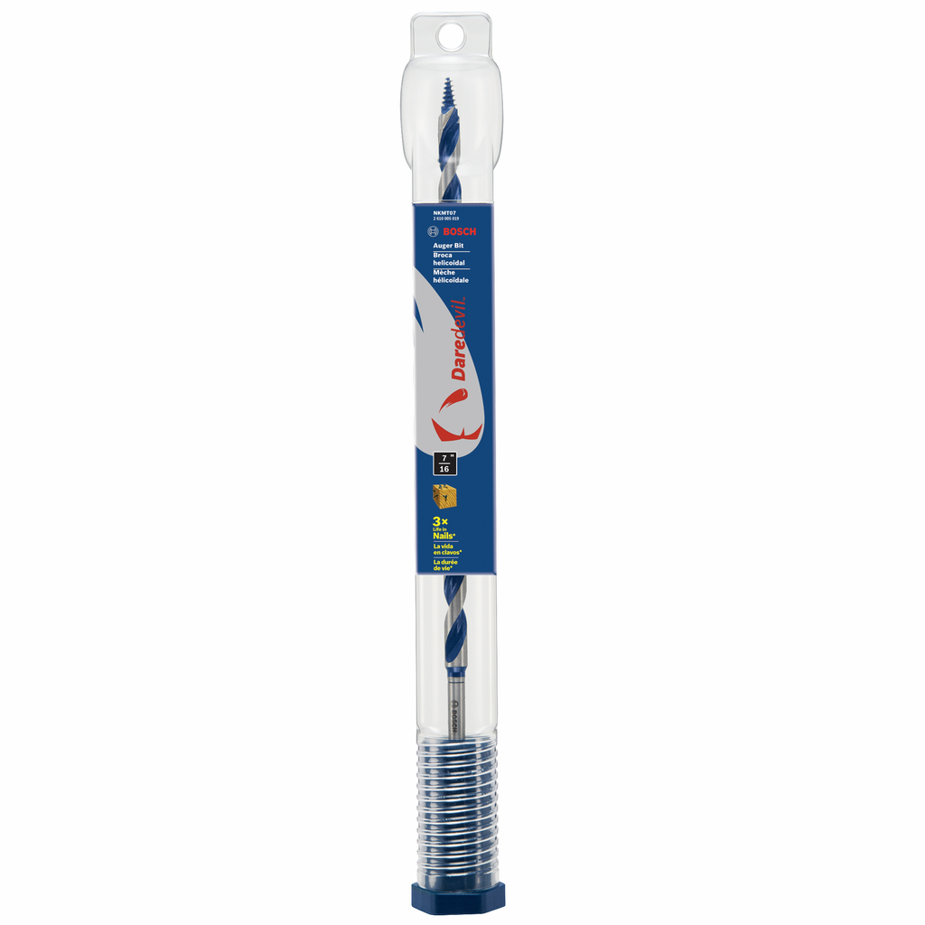 Engineered for efficiency and durability, Bosch’s 7/16 In. x 13 In. Daredevil™ Auger Bits are designed to tackle wood with ease and provide exceptional toughness against nails. The dual cutting edges facilitate smoother penetration, making nail cutting and balanced drilling a hassle-free experience. An innovative open-faced flute enables effective chip removal, while the reamer edge enhances the quality of both entry and exit holes, ensuring cleaner results for every project. With a reinforced tip built to withstand repeated impacts, these auger bits promise an impressive life expectancy, boasting up to nine times more resilience against nail encounters, making them an essential choice for professionals and DIY enthusiasts alike.