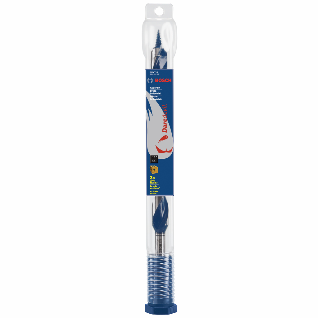 Bosch’s Daredevil™ auger bits are expertly engineered for exceptional performance in woodworking, particularly when encountering tough materials like nails. With a unique reamer edge that enhances the quality of both entry and exit holes, these bits ensure a clean and precise drilling experience. Notably durable, they boast a reinforced tip designed to withstand repeated nail hits, promising a lifespan that is nine times longer than traditional bits.