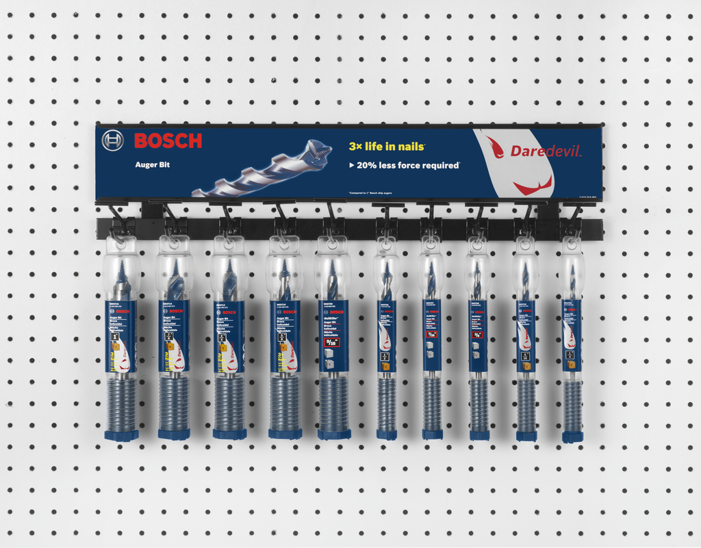 Experience efficient drilling with the 7/16 In. x 7-1/2 In. Daredevil™ Auger Bits from Bosch, engineered to tackle wood with remarkable ease while also handling tough nail encounters. Featuring dual cutting edges, these bits effortlessly cut through nails and provide a balanced drilling performance, making them an ideal choice for professional and DIY projects alike. The reinforced tip enhances durability against repeated nail hits, while the innovative reamer edge ensures that both entry and exit holes are clean and precise. Additionally, the open-faced flute design allows for improved chip removal, keeping your work area clear and efficient.