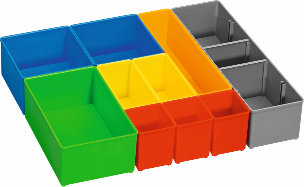 Organize your workspace with this versatile 10 pc. organizer insert set designed specifically for the Bosch i-BOXX72. It allows for easy sorting of various accessories, bolts, screws, and other small components, simplifying your workflow and enhancing your efficiency. Featuring ten modular organizers in a range of shapes and sizes, this set ensures you can find exactly what you need at a glance, thanks to its color-coded design, which facilitates quick identification. Whether you’re a professional tradesperson or a DIY enthusiast, this organizer insert set is an essential component for maintaining order and accessibility in your storage system.