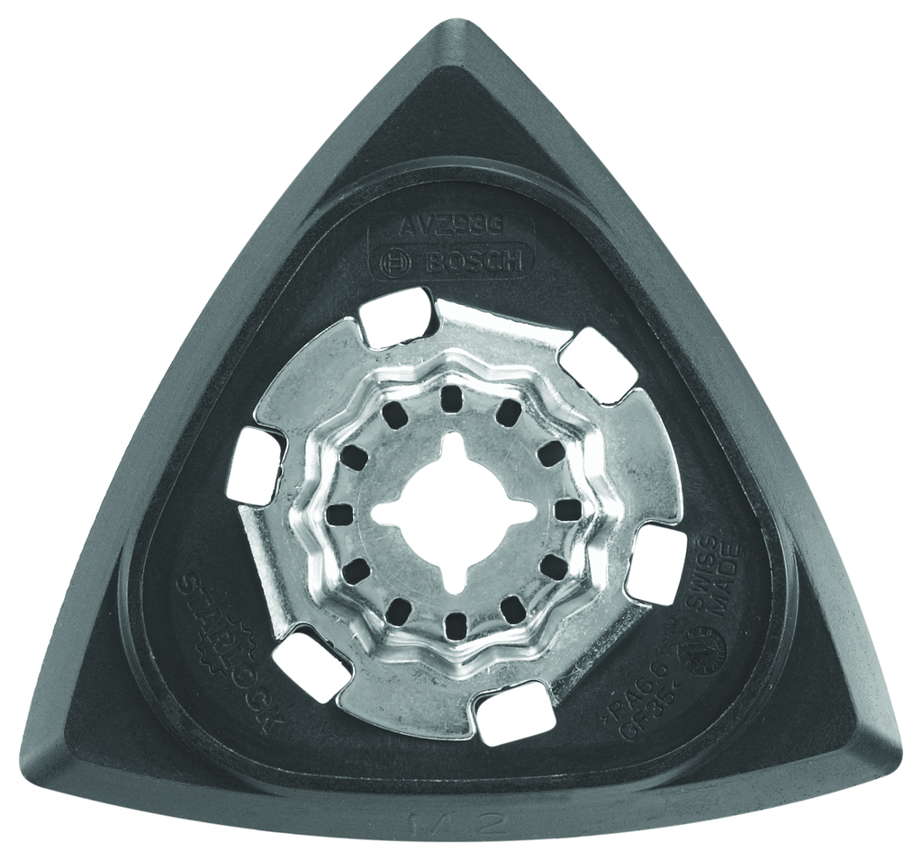 The Starlock® Oscillating Multi-Tool Delta Sanding Pad from Bosch is engineered for versatility and efficiency in your sanding tasks. Featuring a unique Starlock® interface, this accessory offers an optimal 3-D connection to ensure a firm grip during operation. Its thoughtfully designed delta shape allows for effective sanding in tight or hard-to-reach spaces, making it ideal for use on plywood, hardwoods, and softwoods alike. Additionally, the hook-and-loop backing facilitates quick changes of sandpaper, enhancing convenience and productivity. This sanding pad is a reliable companion for any project requiring precision and flexibility in surface preparation.