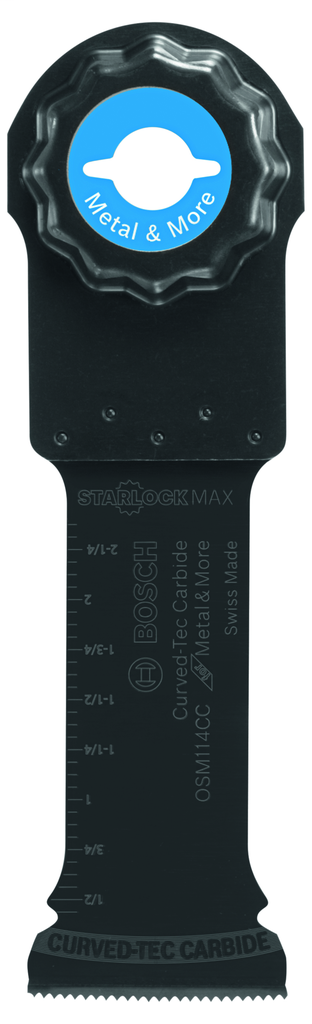 Crafted for serious professionals, the 1-1/4 In. StarlockMax® Oscillating Multi-Tool Curved-Tec Carbide Extreme Plunge Blade by Bosch is engineered to excel in extreme-duty applications. Its reinforced tapered body minimizes vibration and blade flex, enhancing stability and ensuring smoother cuts while tackling a variety of materials including wood with nails, drywall, PVC, and ceramics. Featuring carbide teeth that provide an impressive 30 times the lifespan compared to standard bi-metal blades, this Swiss-made blade combines durability with exceptional performance, making it an essential addition for demanding jobs. The innovative design also incorporates a color-coded interface and a laser-etched surface, allowing users to quickly and confidently select the right blade, enhancing overall efficiency in any project.