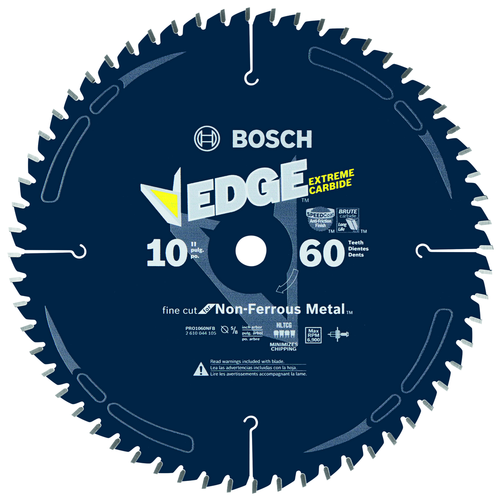 Engineered for precision and longevity, this 10-inch circular saw blade from Bosch is specifically designed to cut non-ferrous metals with exceptional accuracy. The extra-hard steel blade body resists bending and deflection, ensuring true cuts even in the most intricate profiles, while the innovative SpeedCoat finish allows for cooler operation and reduced dust accumulation compared to traditional bonded abrasive wheels. Featuring a Triple Chip Grind tooth geometry, this blade not only produces clean cuts but also excels in delivering a fine finish on highly abrasive materials. With its Brute Carbide formulation, it boasts increased impact resistance, making it a reliable choice for various metalworking applications. Overall, this high-performance blade stands out in terms of quality manufacturing and thoughtful engineering, tailored for those who demand the best results.