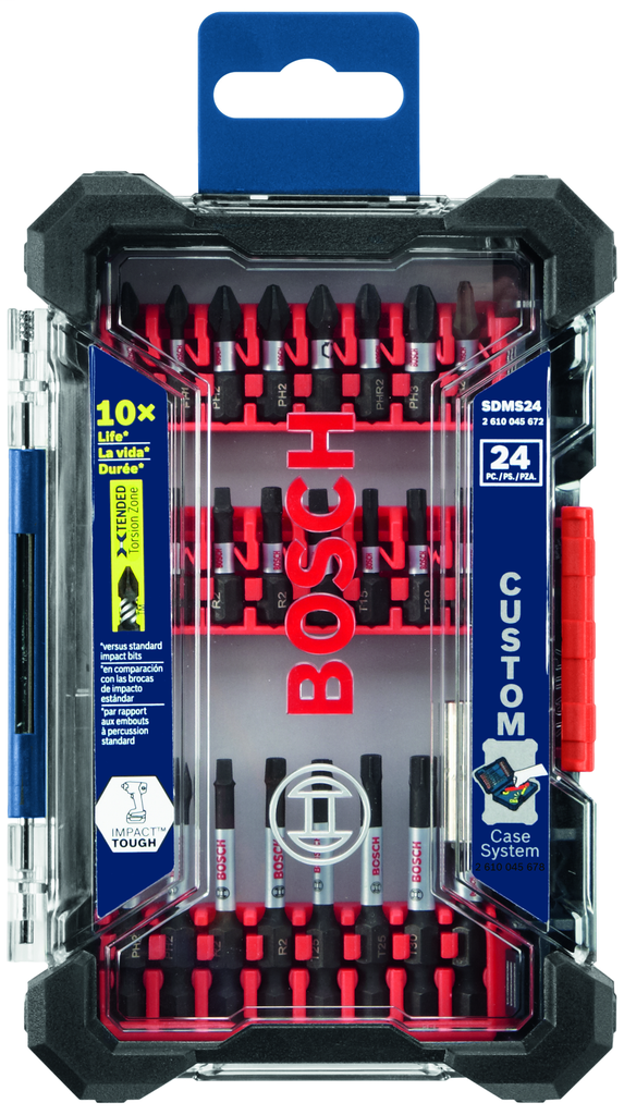 The Bosch 24 pc. Impact Tough™ Screwdriving Custom Case System Set is engineered for professionals who demand durability and precision in their tools. This comprehensive set features a customized storage configuration that ensures quick access to the right bit, allowing for efficient operation on any job. Each bit is precision-engineered with heat-treated manufacturing for strength and includes high-visibility sleeves for easy identification, helping to minimize downtime.