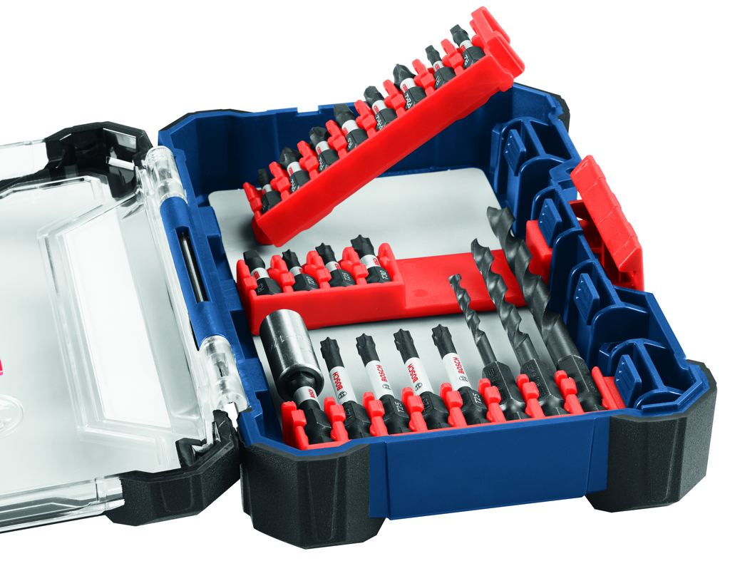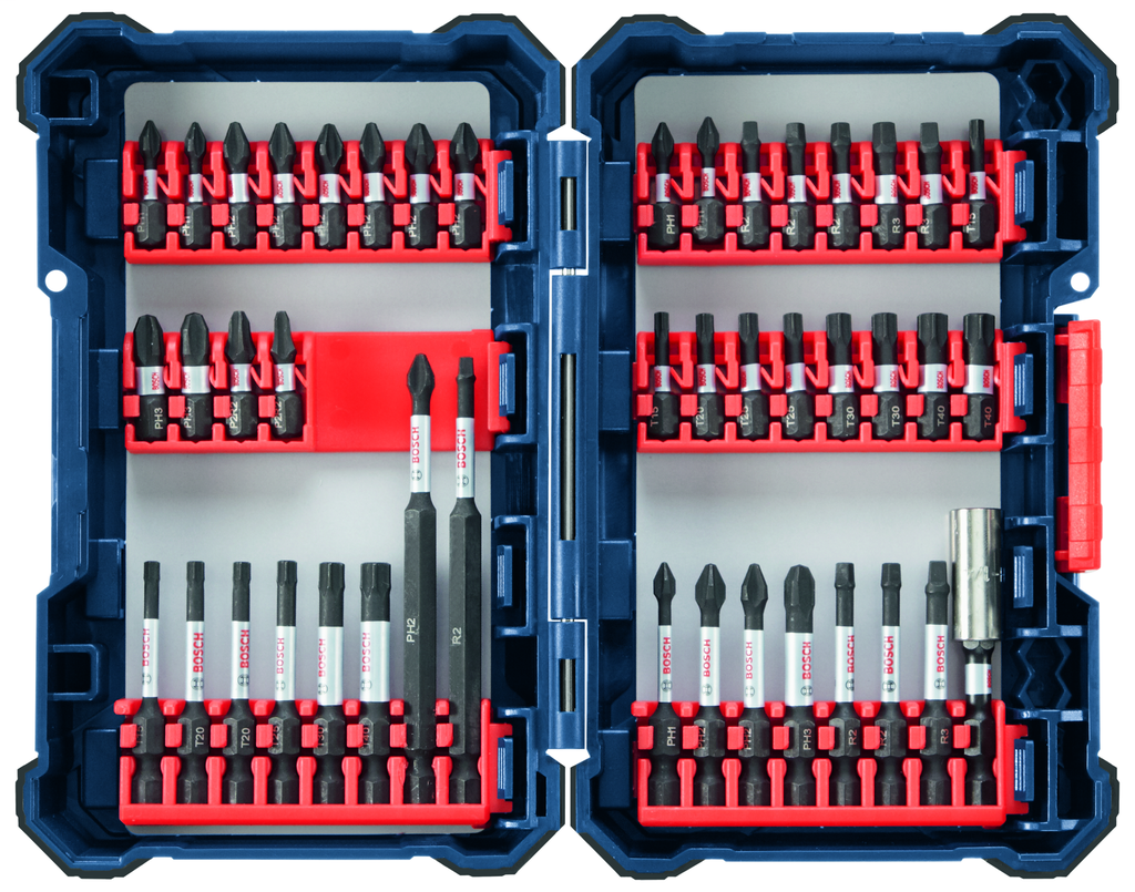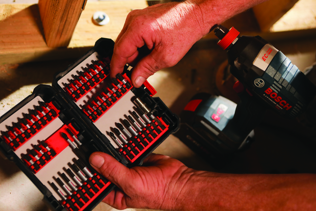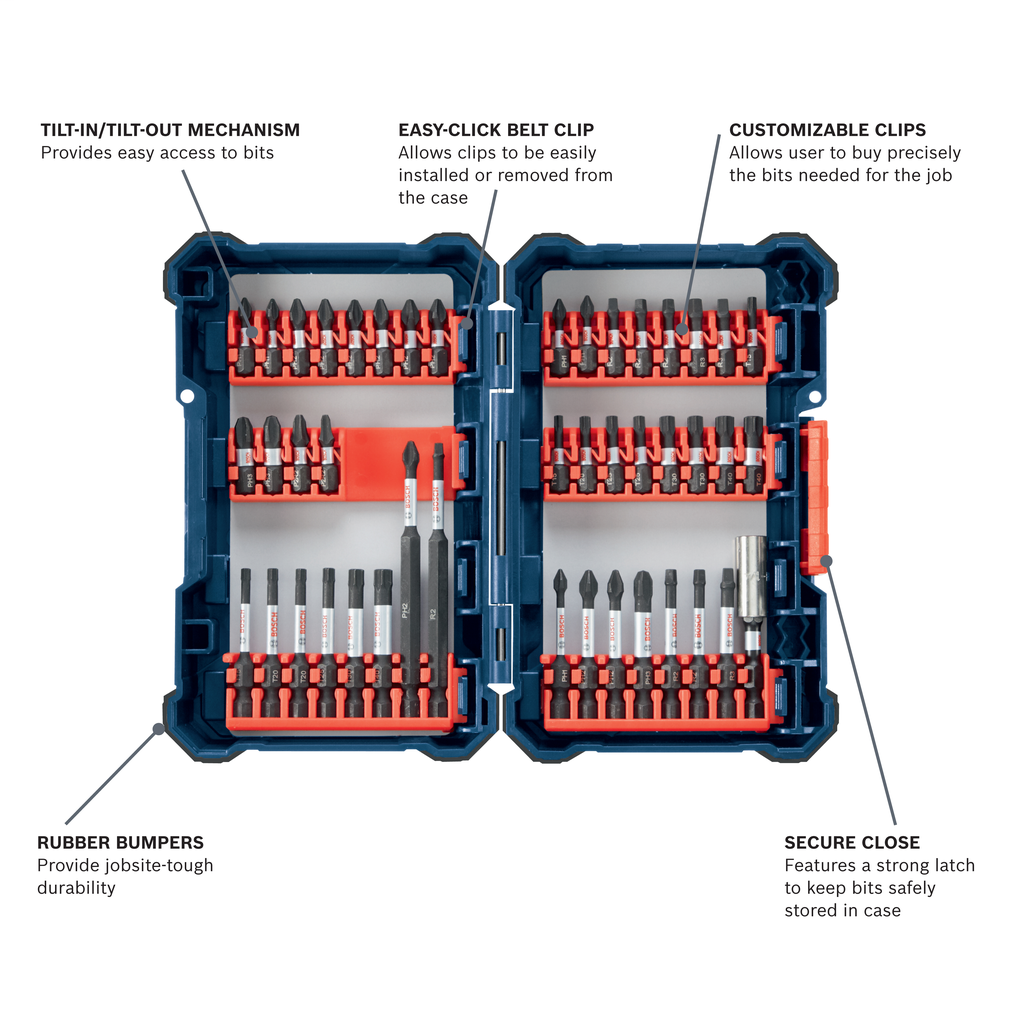 The 44 pc. Impact Tough™ Screwdriving Custom Case System Set from Bosch is designed to enhance the efficiency and effectiveness of your screwdriving tasks. Each precision-engineered bit tip is crafted to provide a tighter fit, significantly reducing cam-out, while the heat-treated bit manufacturing ensures exceptional strength for prolonged use. Its high-visibility bit sleeve makes identifying the right bit quick and effortless, enabling a smoother workflow.