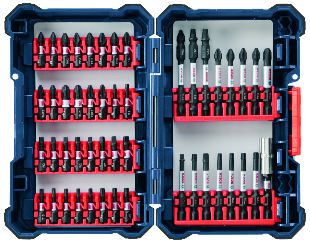 The 48 pc. Impact Tough™ Screwdriving Custom Case System Set from Bosch is designed to enhance efficiency and organization for any toolkit. Featuring a tailored storage configuration, users can easily access their bits with a high-visibility bit sleeve and a tilt-in/tilt-out case mechanism, ensuring the right tool is always at hand when you need it. Each bit in this comprehensive set is crafted with an Impact Tough™ design, offering ten times the lifespan of standard impact bits, while the Xtended Torsion Zone absorbs the high-torque demands of modern impact drivers, preventing premature wear.