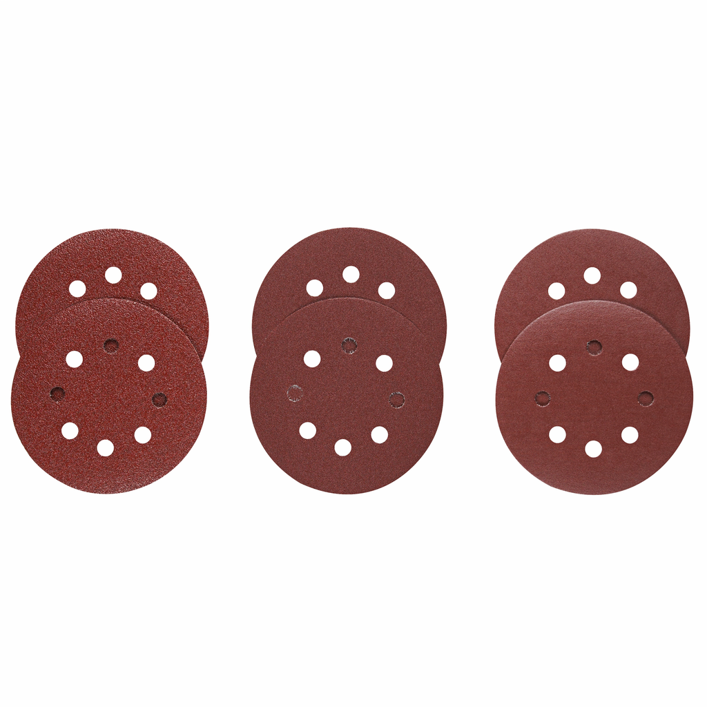 Bosch SR5R000 – 5″ HOOK & LOOP SANDING DISC, 8-HOLE, RED, 60/120/240 ASSORTED GRITS (6 PK)