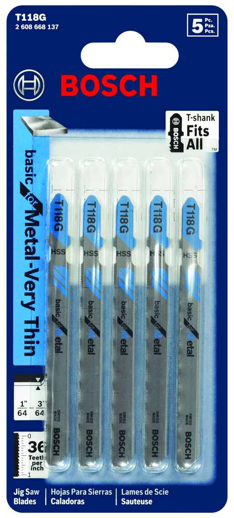 Bosch T118G – 3″, 36TPI, HSS T-SHANK JIGSAW BLADE (5 PK)