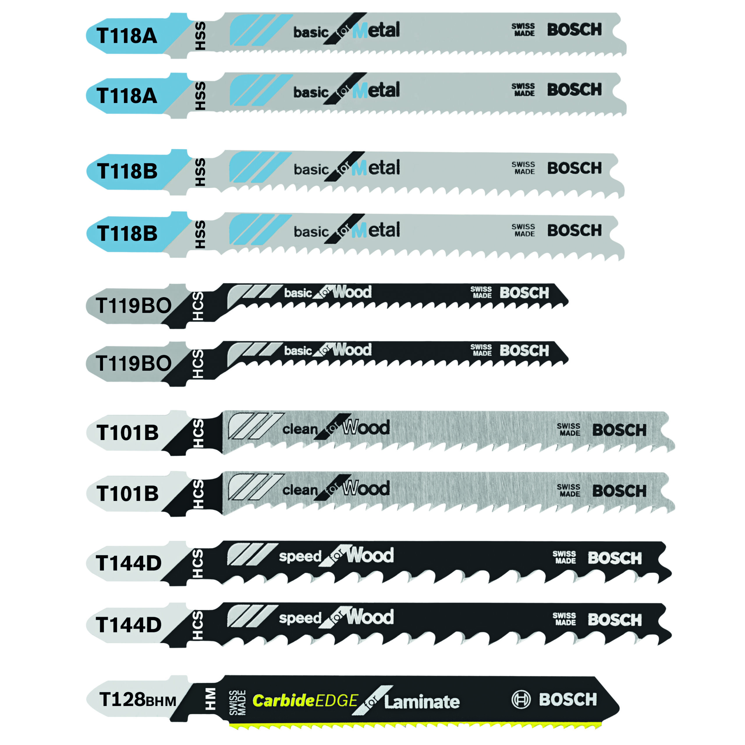 Bosch T11C – 11 PC. LAMINATE/WOOD/METAL T-SHANK JIG SAW BLADE SET