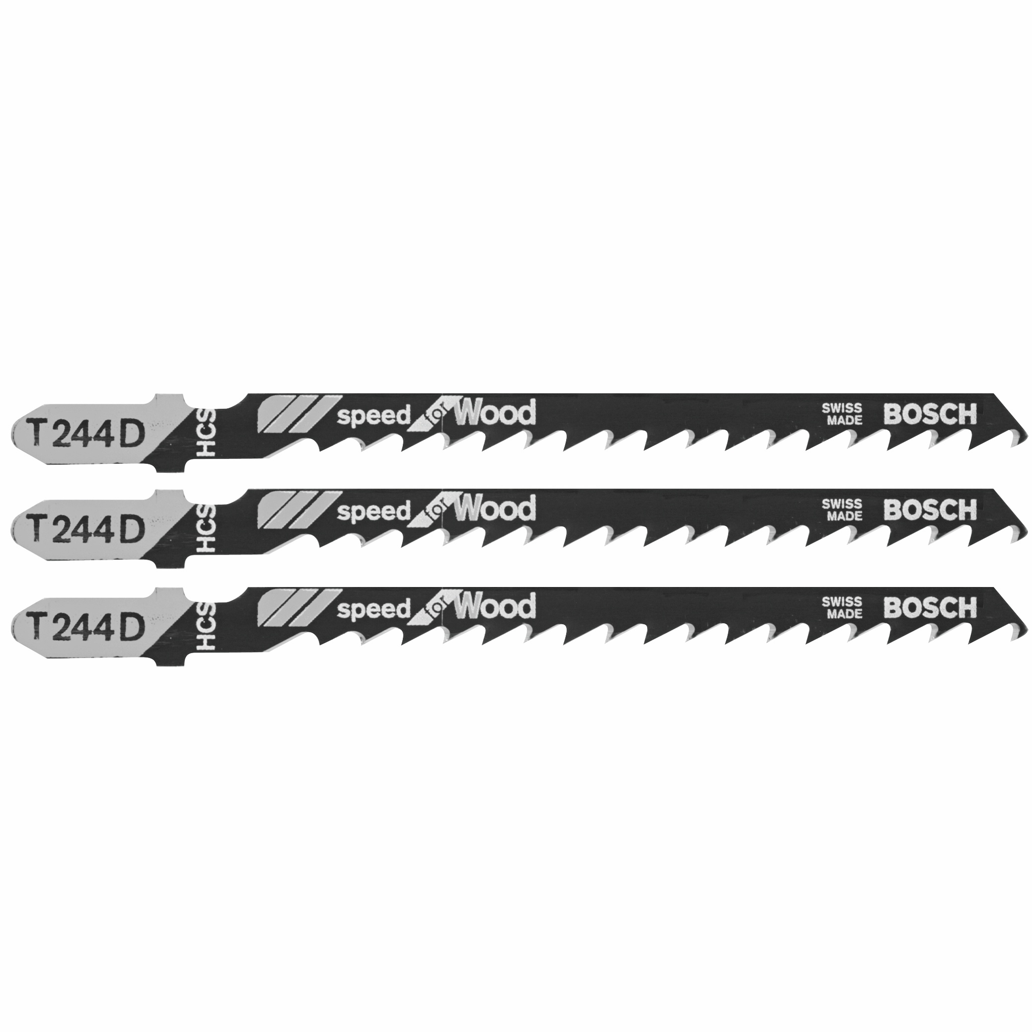 Bosch T244D3 4″, 6TPI, HCS T-SHANK JIGSAW BLADE (3 PK) (3/Pack)