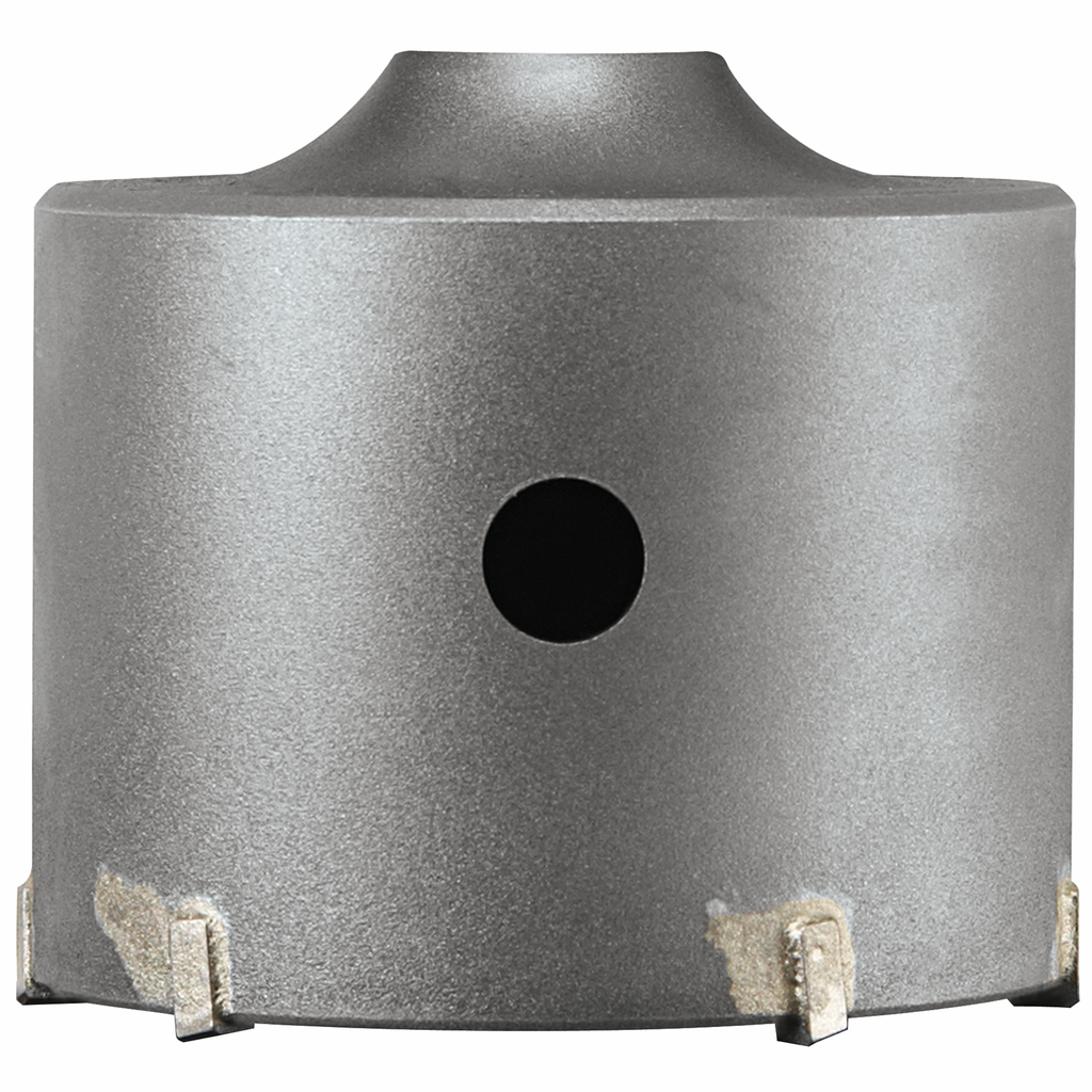 Efficiently designed for use with smaller hammers, the 3-3/16 inch SDS-plus® SPEEDCORE™ Thin-wall Core Bit from Bosch is an essential tool for professionals and DIY enthusiasts alike. It features an integrated pilot bit with mandrel and a strategically placed ejector hole, enhancing the core drilling process. Crafted with high-grade tungsten carbide teeth, this core bit ensures durability and precision while working seamlessly with Bosch SPEEDCORE™ SDS-plus® pilot bits and extensions. With safety in mind, it is recommended to use eye, ear, and dust protection while operating this powerful drill bit, making it a reliable choice for various drilling applications.