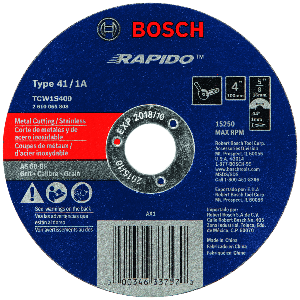 Bosch TCW1S400 – 4 X .040 X 5/8 TYPE 1 THIN CUTTING DISC AS60INOX-BF FOR STAINLESS/METAL (BULK)