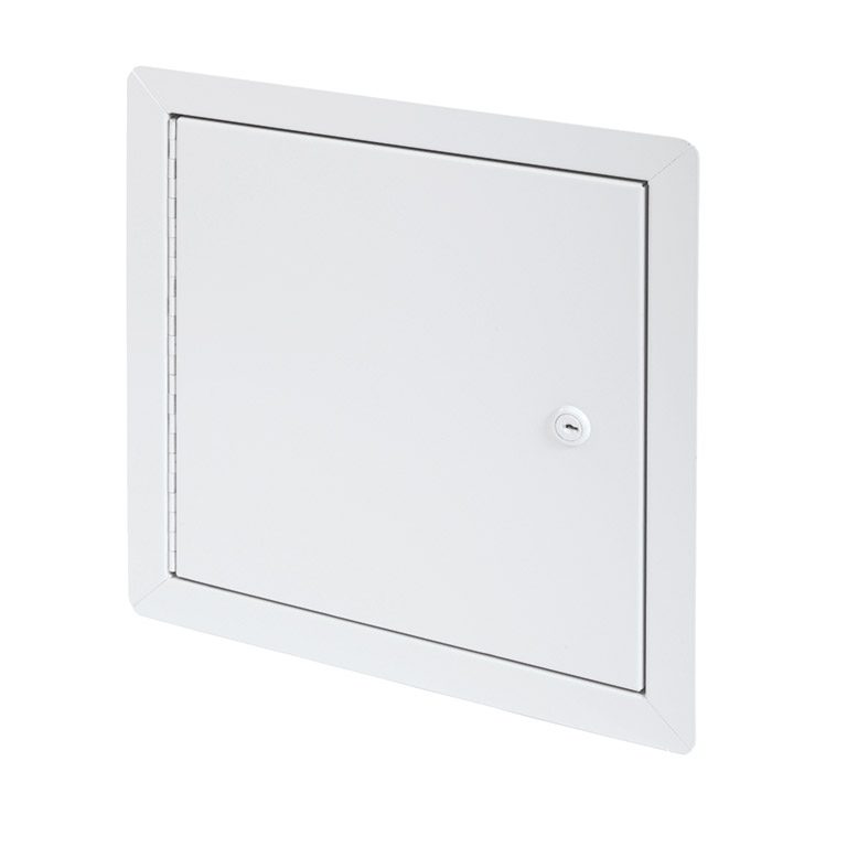 key-operated cylinder cam latch, aluminum piano hinge; The aluminum access door, with neoprene gasket and fiberglass wool insulation, reduces sound and air transfer between partitions.