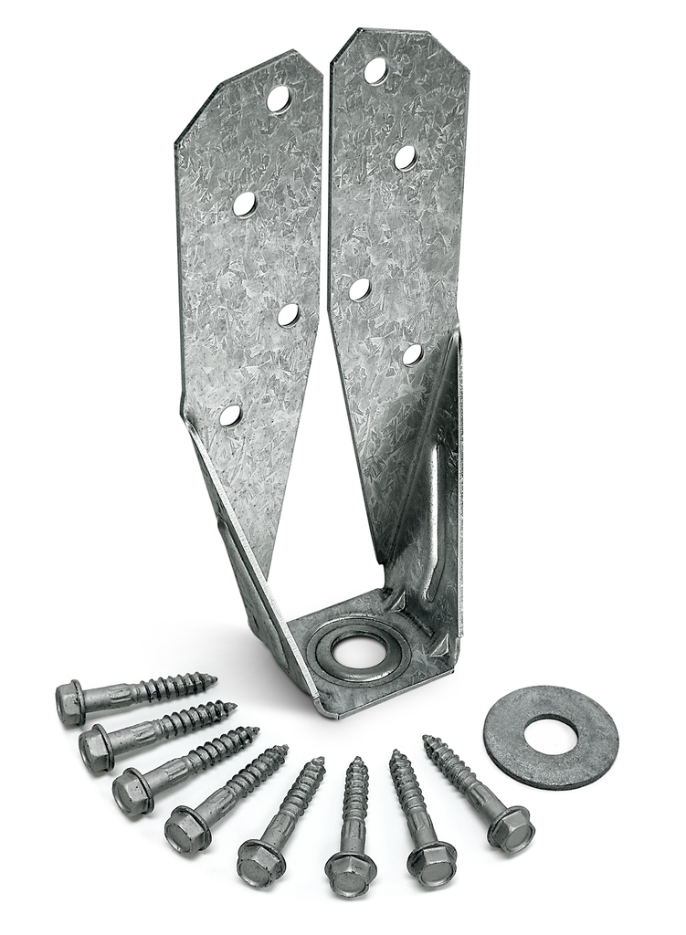 The Simpson Strong-Tie® DTT2Z® tension tie is a safe, cost-effective way to attach deck-railing posts to the deck framing for stronger, safer railings. Because the post is tied back into the deck joists, rather than to the rim joist alone, the connection is stronger than typical through-bolt installations. The DTT2Z is also ideal for guardrail-post connections and lateral-load connections between the deck and house.