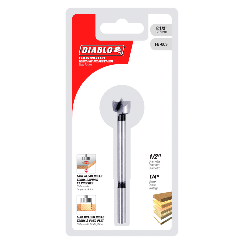 This 1/2-inch Forstner bit from Diablo Tools is expertly crafted for precision drilling in various wood types, including plywood, MDF, and both hardwoods and softwoods. The ultra-sharp spur design minimizes walking on the material, ensuring accuracy and clean, splinter-free holes. Its steep, angled cutting edges allow for smooth, flat holes while efficiently removing chips with chisel-like curls. Crafted from forged, hardened steel, this bit not only delivers durability for extended life but also maintains a sharp cutting edge, making it an essential tool for both professional woodworkers and DIY enthusiasts. Whether you’re working with veneered plywood or solid wood, this bit is engineered to meet your drilling needs effectively.