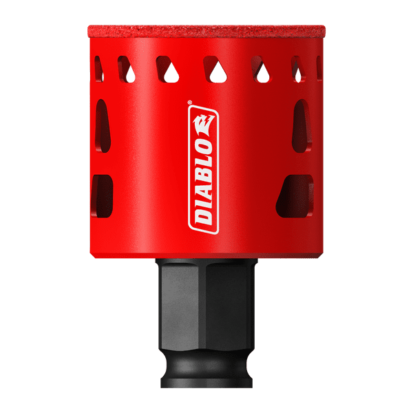 Diablo’s high-performance Diamond grit hole saws deliver longer life and faster material removal when boring holes into tile, stone, and glass. A continuous rim diamond grit edge delivers lasting durability and maximizes cut quality in masonry applications. An open slot design ensures easy removal of plugs. Diablo’s hole saws are compatible with Diablo’s SnapLock™ PLUS mandrel system, resulting in quick, easy, and effortless cup changes.