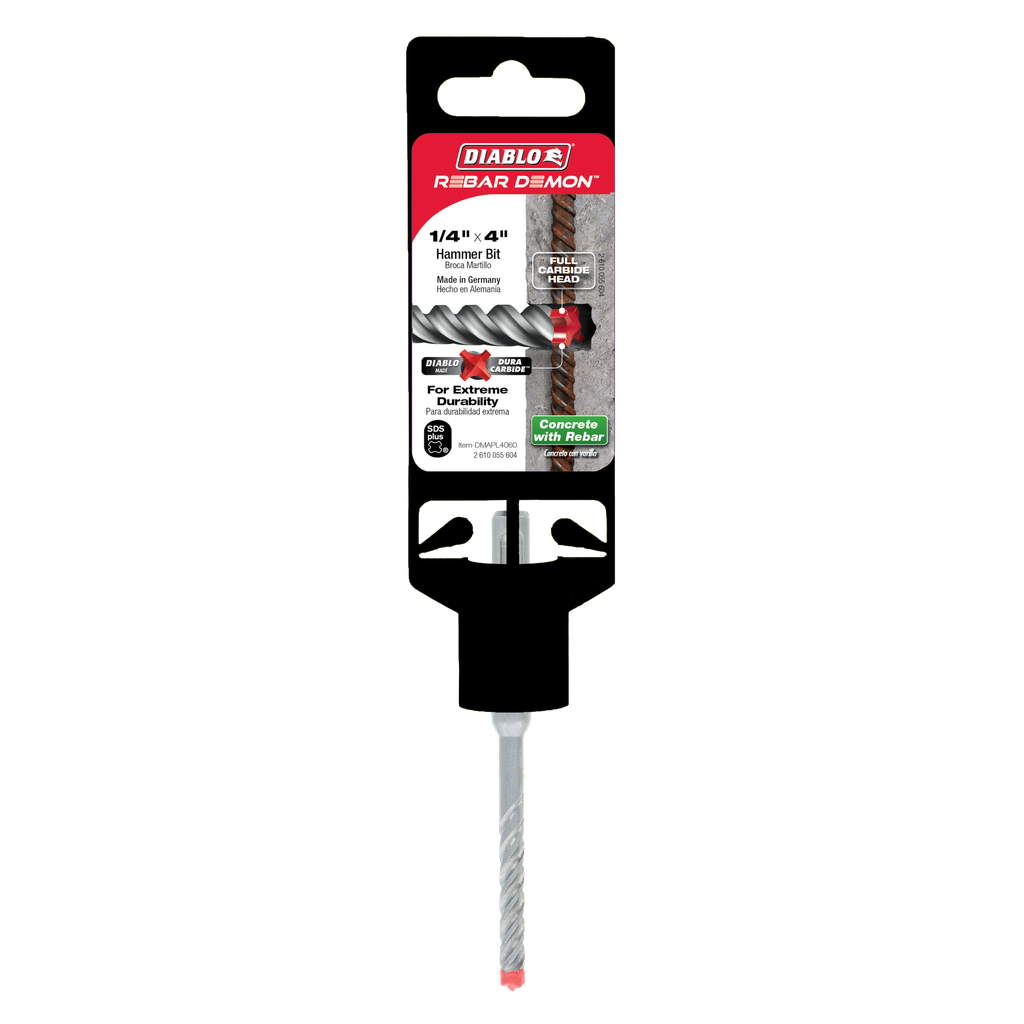 Diablo 1/4 in. x 2 in. x 4 in. Rebar Demon™ SDS-Plus 4-Cutter Full Carbide Head Hammer Drill Bit