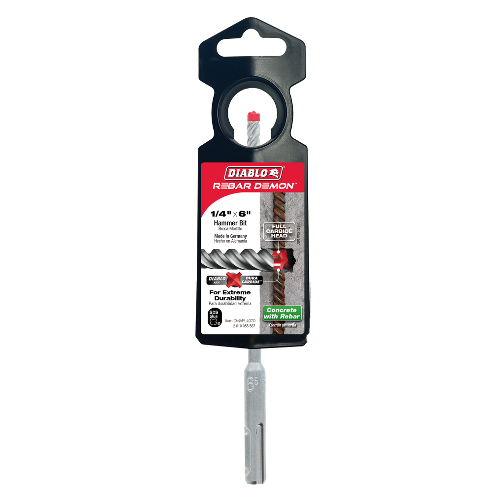 Diablo 1/4 in. x 4 in. x 6 in. Rebar Demon™ SDS-Plus 4-Cutter Full Carbide Head Hammer Drill Bit